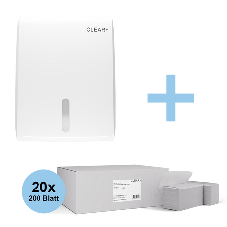 Clear+ Aktionsset Papierhandtuch | Falthandtuchspender & Faltpapier (4.000 Blatt)
